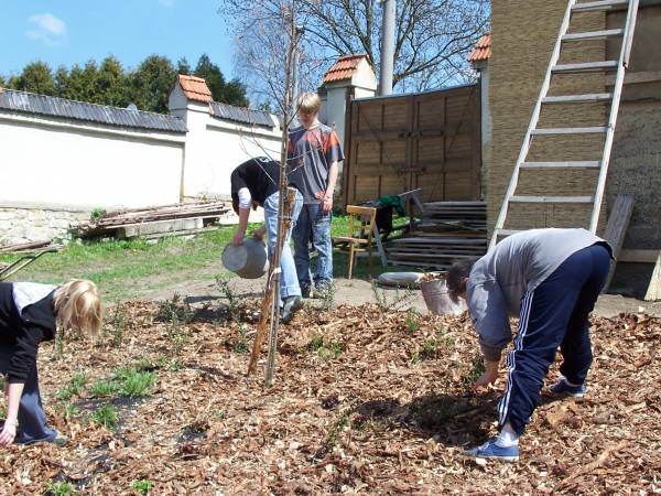 Žáci základní školy pomáhají v "Kocourkově zahradě"