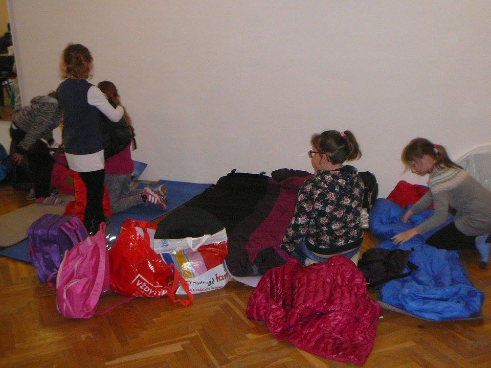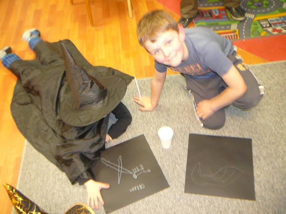 Úspěšní žáci školy kouzel na stezce obdrželi jedlé a fosforeskující pavouky a znaky svých kolejí, které si mohli vymalovat. Následovaly hry, soutěže, společné focení. V závěru večera, když se děti zachumlaly do spacáků, samozřejmě nechybělo ani čtení na dobrou noc. Tentokrát jsme zvolili četbu tradičních pohádek od Boženy Němcové.